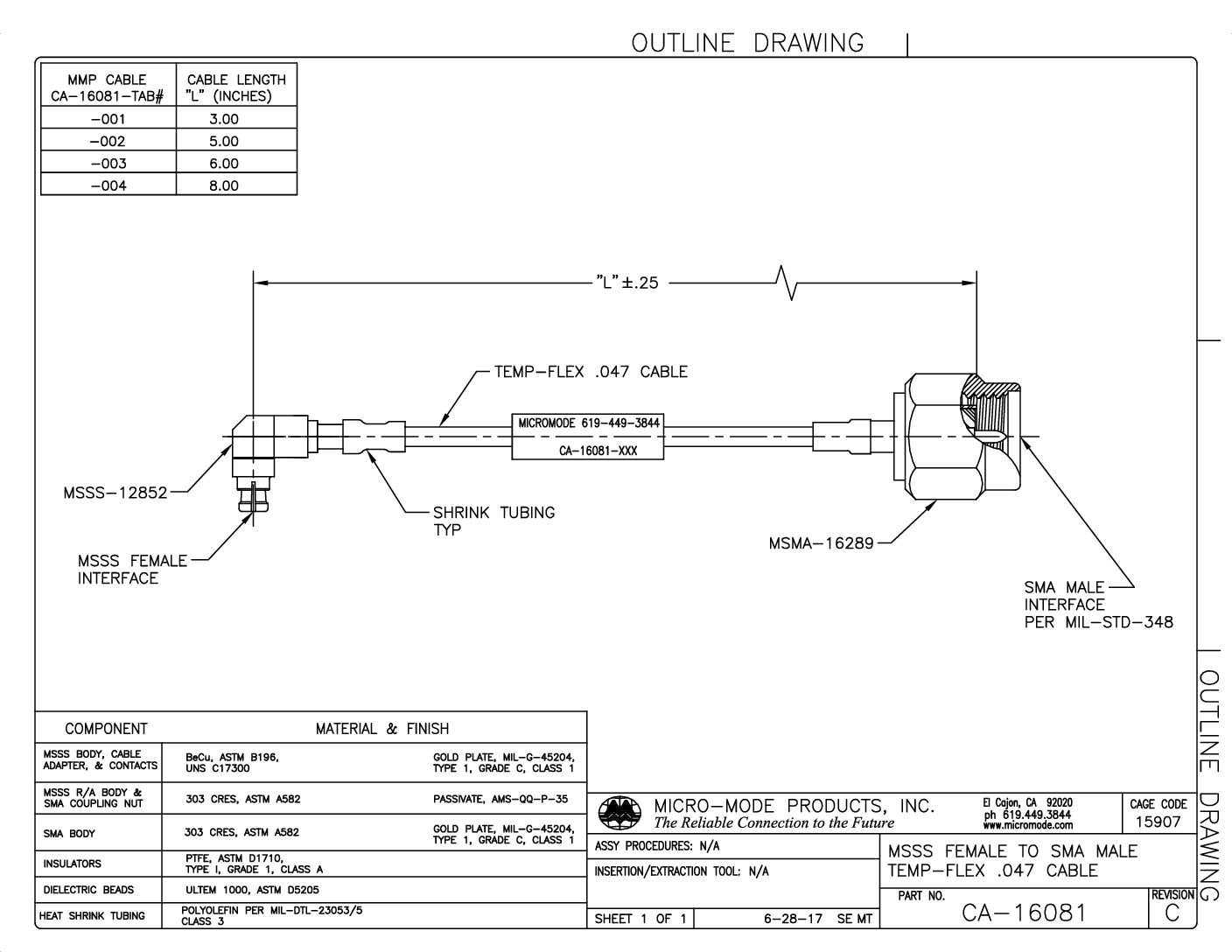 MSSS Female to SMA Male Temp-flex .047, various lengths