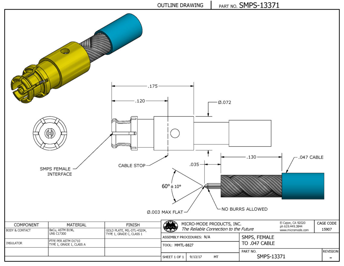 SMP Full Detent (Male), .086 Cable